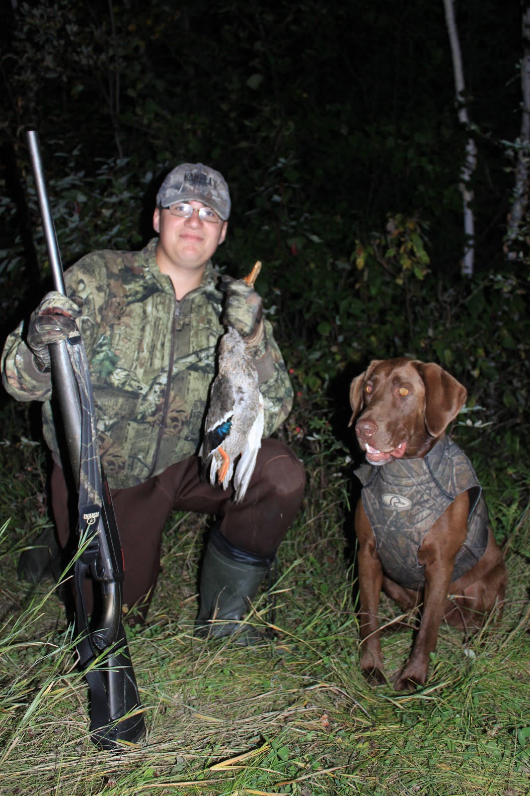 It didn't seem to take long for fall to come, and fast wing beats filled the air. This year I planned to try a few new places to hunt, and see where things go from there. The first place we hunted was a little wild rice lake. I scouted out a few places, and this was thee place. Since our water was high, a few of my old spots had drowned rice, and only a few ducks. But this lake was chuck full of Mallards and Canada's. We got in there early, and had one heck of a canoe ride to get a across the lake, to where I thought would be the best spot to set up. I wish I had a picture of 3 grown men, my lab Maggie, and all our gear in one canoe. We made it and set up. It didn't take long, and there was steel flying everywhere. It also didn't take long to see where we should have been set up, but that all comes with learning the spots. The day was a success, and Maggie again did awesome.